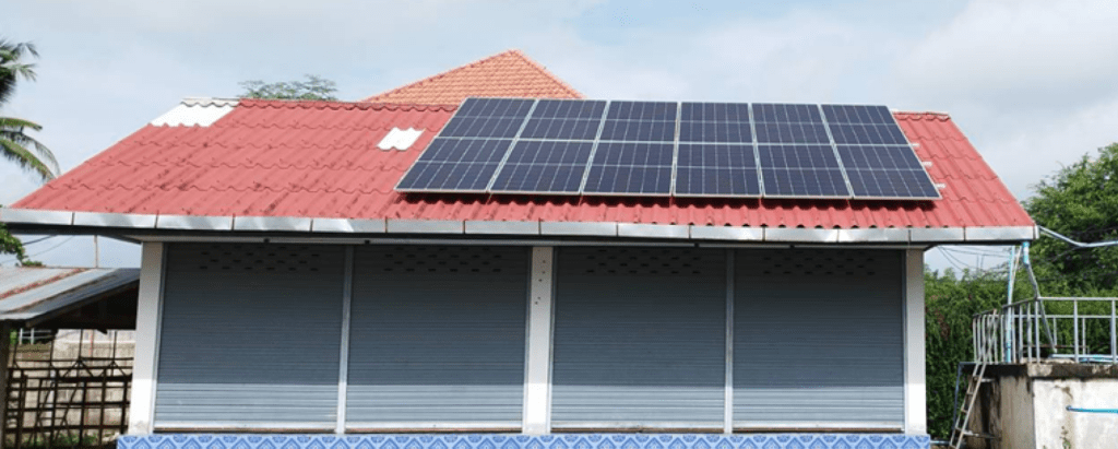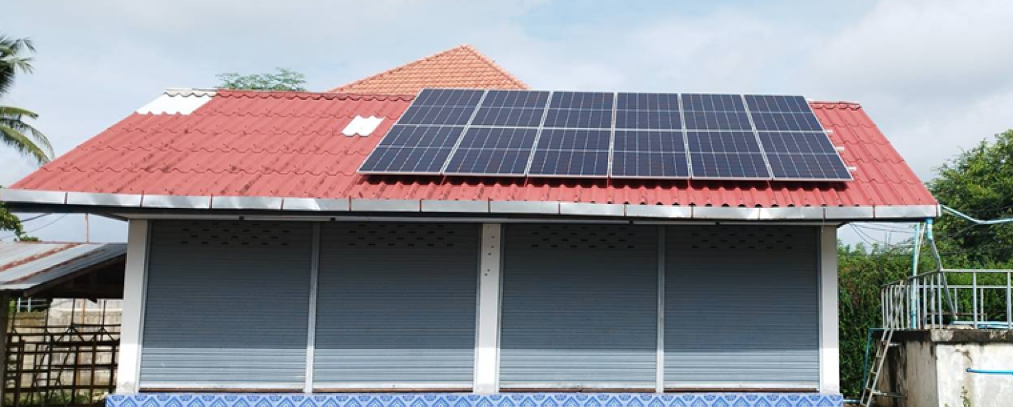 เทศบาลตำบลทางทุ่งหลวง อำ เภอแม่ทา จังหวัดลำ พูน ติดตั้งโซล่าเซลล์บริเวณประปาหมู่บ้าน